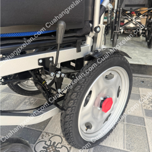 - Bánh xe: xe lăn điện Jerry 1803X sử dụng bánh vành đúc chắc chắn, kết hợp với lốp hơi (bơm hơi). Lốp hơi mang lại cảm giác êm ái, giảm xóc tốt khi đi qua các địa hình gồ ghề, giúp người ngồi trên xe cảm thấy thoải mái hơn.